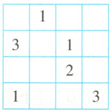 4. 东东玩“四宫数独”填数游戏(如图),一共需要填16个数字,已经填好6个数字。还要填多少个数字?(4分)