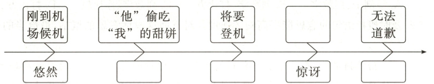 2.边读边思考,找出文章的线索,有利于提高阅读速度。读短文,将“我”的心情和对应的情节补充完整。(6分)