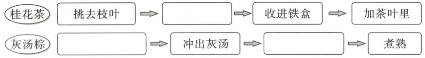 1.根据选文,完成桂花茶和灰汤粽的制作流程。(3分)