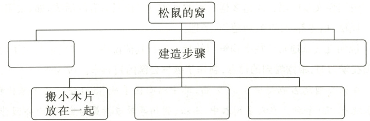 2.第②段围绕“松鼠的窝”依次介绍了哪三个方面的内容?补全下列思维导图。(4分)