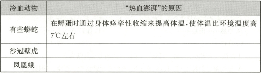 3.为什么说很多冷血动物过着“热血澎湃”的精彩生活?请结合短文内容帮助同学们补