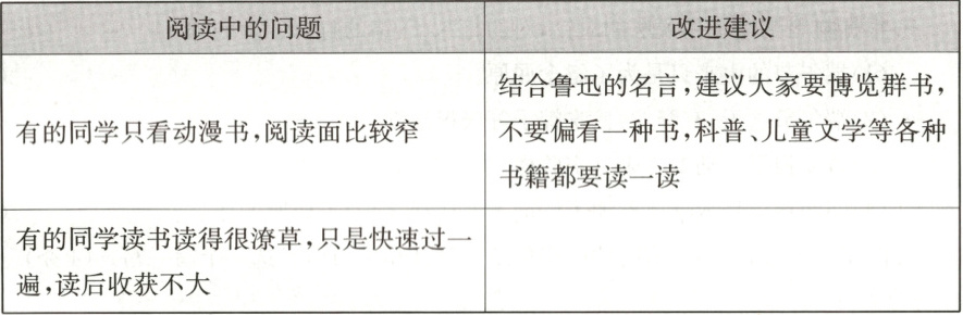 3. 下面是五年级(1)班全班同学的读书调查情况,针对阅读中的问题,请你结合材料提出改进建议。(2分)