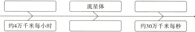 ①看! 前面呼啸而过的东西是什么?跟它的速度一比,火箭就好像是静止的一样。那是流星体!流星体是太空中一种较小的天体。有的流星体运动的最大速度能达到 25 万千米每小时,是火箭运动最大速度的 6 倍多。