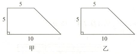 13. 如图,直角梯形的上底为5,下底为10,高为5,按要求画图。