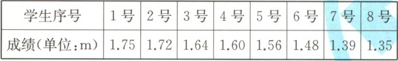 5.【新趋势】生活数学下面是六(2)班8名学生立定跳远的测试成绩。如果想让$\frac{3}{4}$的学生能达标,那么“达标线”可以定为(