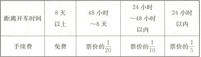 3.【新情境】社会生活王叔叔准备本周六去上海游玩,购买了一张周六上午8:32发车的高铁票,票价为160元。由于天气原因,决定取消出门计划。火车票退票需要按票价扣除一定的手续费,规定如下表。如果王叔叔在周四上午8:15申请退票,那么能退回多少钱?(5分)