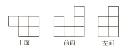 2. 新素养 空间观念)用几个1立方厘米的正方体木块摆成一个物体,下图是从不同方向看到的图形,这个物体的体积至少是()立方厘米。