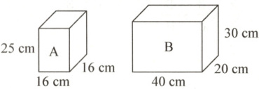 1.如图,有长方体容器A和B,B中有16.5厘米深的水,容器A是空的。若将容器B中的水倒一部分给容器A,使两个容器内水的高度相等,此时水深应是多少厘米?(5分)