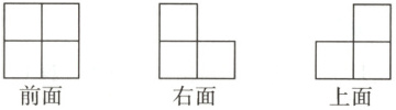 11. ﹙新素养 空间观念﹚小军观察一个模型(由棱长为1厘米的小正方体拼成),分别从前面、右面和上面观察,看到的图形如下,该模型的体积是()立方厘米。