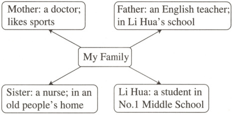 假如你叫李华。你们学校校报正在征稿,主题为 “My Family”,请根据下面的思维导图用英语写一篇短文进行投稿。