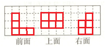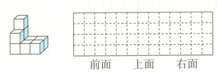 3. 下面立体图形从前面、上面和右面看,各是什么图形?在下面的方格纸上画出来。(3 分)