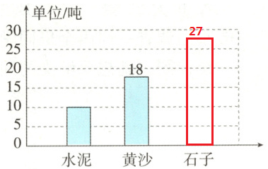 (3)上星期用去石子 27 吨,画出表示石子吨数的直条。