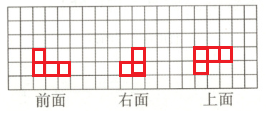 3. 在方格图中分别画出从前面、右面和上面观察下面物体时看到的图形。(3分)