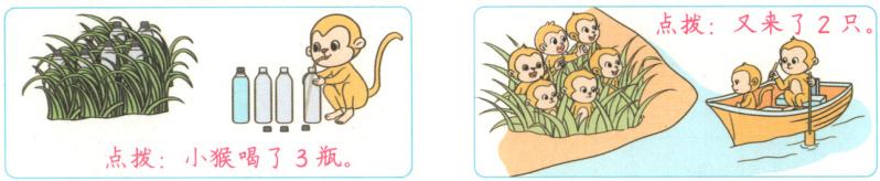 (答案不唯一)还剩几瓶?10-3=7(瓶) 现在一共有几只小猴?6+2=8(只)