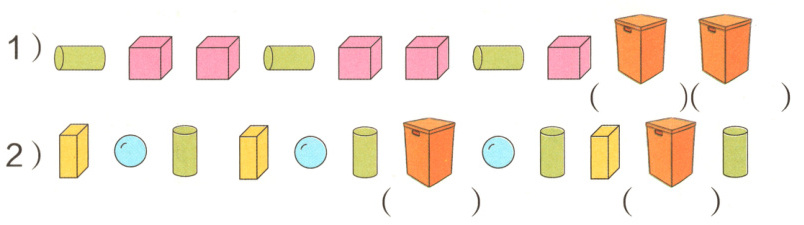 正方体有( )个,长方体有( )个,球有( )个,圆柱有( )个。