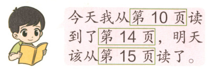 8 今天我从第10页读到了第14页,明天该从第15页读了。他今天读了几页?