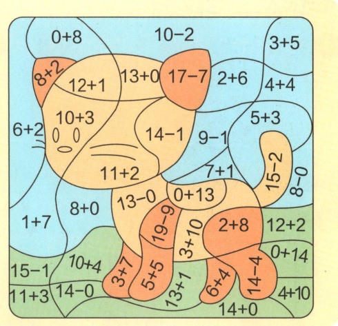 得数是8的涂○,得数是10的涂●,得数是13的涂 ,得数是14的涂 。