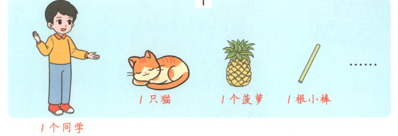 点拨:2可以表示2根筷子,3可以表示3条鱼,4可以表示4块橡皮,5可以表示5根手指等。