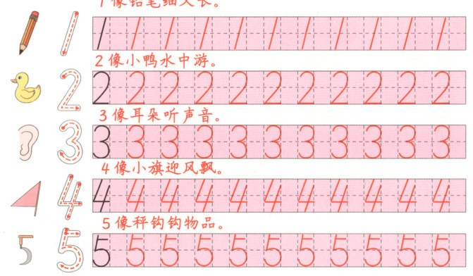 总结:将抽象数字具体化、直观化,有利于从整体上把握1~5的顺序。