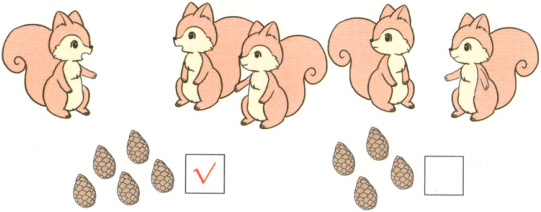1 每只松鼠(shǔ)吃1个松果,哪一堆正合适?画“√ ”。