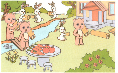 (答案不唯一)胡萝卜比苹果多,5>3或3<5。