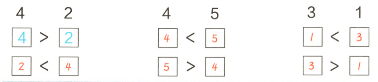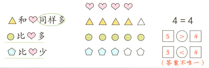 5>4;比少答案示例:3<4(答案不唯一)