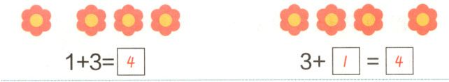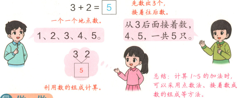 瓶子里原来有4块石子,乌鸦又叼来1块石子,现在一共有5块石子。