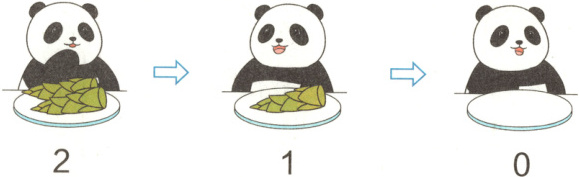 点拨:这三幅图展示了大熊猫把2个竹笋吃完的过程,说明一个也没有可以用0来表示。