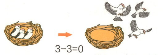 题意:鸟巢里原来有3只小鸟,飞走了3只。鸟巢里现在还有几只小鸟?