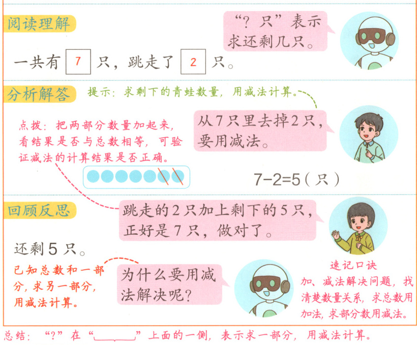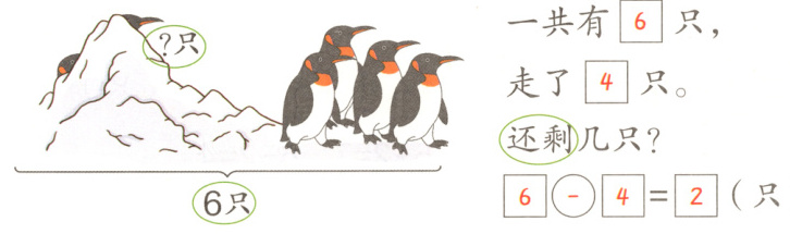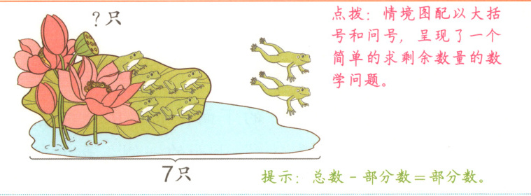 提示:问号在大括号上面的一侧,表示求部分数,用减法计算。