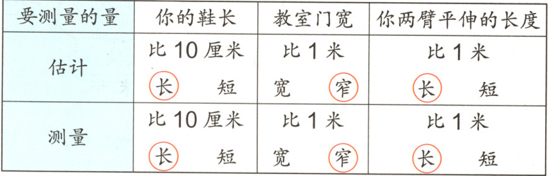 要测量的量 你的鞋长 教室门宽 你两臂平伸的长度
