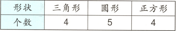 (1)观察题目中卡片的形状,统计三角形、圆形、正方形的数量,填入表格。
