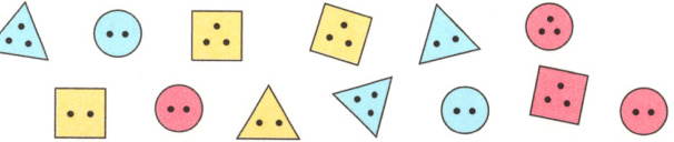 (2)还可以按颜色继续分,蓝色三角形卡片有 3 个,黄色三角形卡片有 1 个;蓝色圆形卡片有 2 个,粉色圆形卡片有 3 个;黄色正方形卡片有 3 个,粉色正方形卡片有 1 个。(答案不唯一)