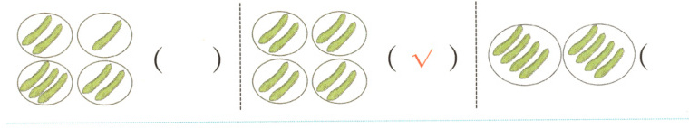 1 把8根黄瓜平均分给4个小朋友。下面哪种分法对?在对的()里画“√”。