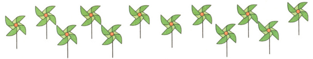 把 12 个风车平均分成 3 份,可以:
