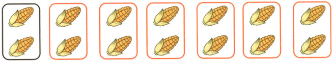 14根玉米,每2根装一袋,可以装(7)袋。