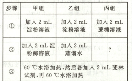 )A.丙组步骤②应加入$2\ mL$蔗糖酶溶液