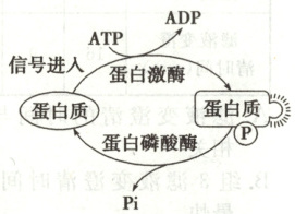 10.(2021·湖南)某些蛋白质在蛋白激酶和蛋白磷酸酶的作用下,可在特定氨基酸位点发生磷酸化和去磷酸化,参与细胞信号传递,如图所示。下列叙述错误的是