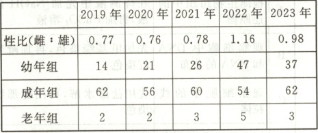 1.(2025·湖北卷)花鼠取食偏好红松球果,且具有分散贮食和遗忘贮藏点的特性。研究人员在2019~2023年间,对某地红松林中花鼠种群数量和红松结实量开展调查,发现2022年红松结实量最高,与其余四年的结实量存在显著差异;其余四年之间的结实量没有显著差异。花鼠种群5年的调查结果如表。根据上述材料,下列推测合理的是
