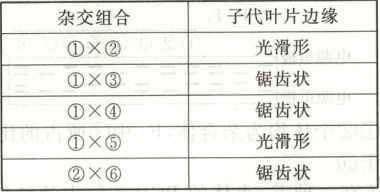 D.④和⑥杂交,子代叶片边缘为光滑形