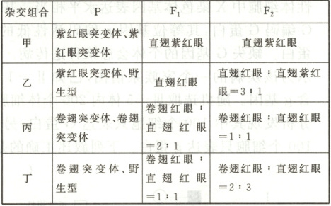 ,则可判定紫红眼基因位于常染色体上。(2)根据杂交组合丙的$F_1$表型比例分析,卷翅基因除了控制翅形性状外,还具有纯合