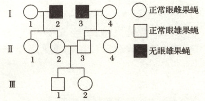 (3)Ⅱ−2 和Ⅱ−3杂交 若后代雌果蝇均为正常眼、雄果蝇有正常眼和无眼,只有雄果蝇有无眼性状,则无眼性状的遗传为伴X隐性遗传;若后代雌蝇、雄蝇既有正常眼也有无眼,则无眼性状的遗传为常染色体隐性遗传;若后代雌蝇、雄蝇都只有正常眼,则无眼性状的遗传为常染色体显性遗传