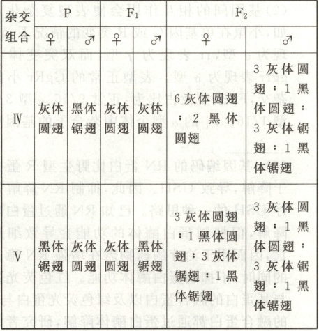 (3)伴X染色体隐性遗传 杂交Ⅴ的母本为锯翅,父本为圆翅,F₁的雌虫全为圆翅,雄虫全为锯翅