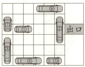 4. [新素养·空间观念]汽车华容道。所有汽车只能前进或者后退。①号车怎样才能开出去?