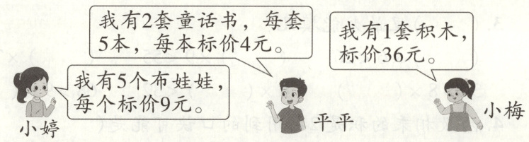 (1)平平的1套童话书多少元?能换小梅的那套积木吗?(5分)