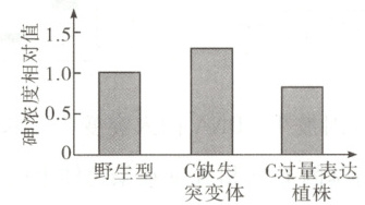 (答出两点即可)。(2)针对砷吸收相关基因C缺失和过量表达的拟南芥,研究者检测了其根细胞中砷的含量,结果如图。由此推测,蛋白C可
