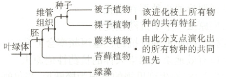 3. [2025·河南卷,7T,3分]系统进化树是一种表示物种间亲缘关系的树形图。研究人员结合形态学和分子证据,构建了绿色植物的系统进化关系,示意简图如图。下列推断正确的是(