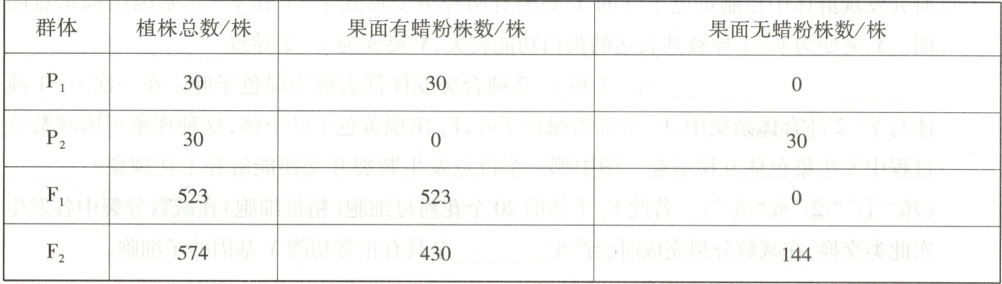 (1)根据表格数据可知,F1的基因型为Aa,其自交得到的F2中,果面有蜡粉植株数与果面无蜡粉植株数之比为430:144≈3:1,符合基因分离定律中杂合子自交后代的性状分离比,所以果面蜡粉的遗传遵循基因的分离定律。