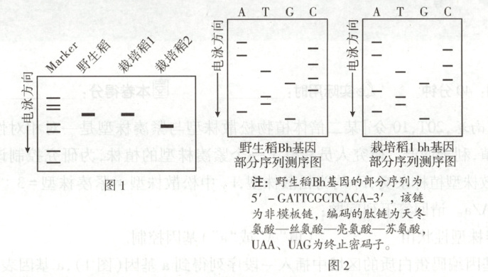 。(3)科研小组采用PCR技术,扩增出野生稻和栽培稻Bh/bh基因的片段,电泳结果见图1。