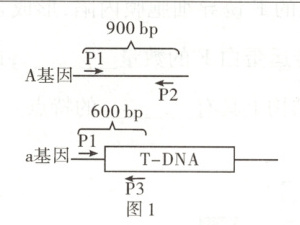 。该植株自交得到F₁。利用图1所示引物P1和P2、P1和P3分别对F₁进行PCR检测,电泳结果如图2所示。根据电泳结果F₁植株分为Ⅰ型和Ⅱ型,其中Ⅰ型植株占比为2/3